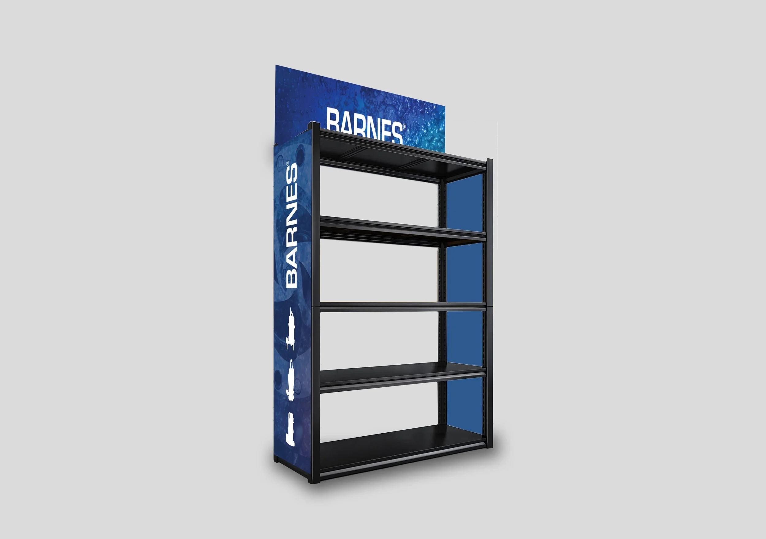 One of Crane Pumps & System’s brands, Barnes, sells some products through a wholesale distribution channel. I created a product display that houses these products in these shops. Created out of PVC panels, these racking displays should last the wear and tear of product coming and going from the shelves.